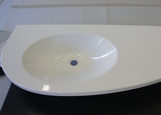 Возможность изготовления столешницы из литьевого камня с интегрированной бесшовной мойкой будет явным преимуществом перед столешницами из натурального камня и