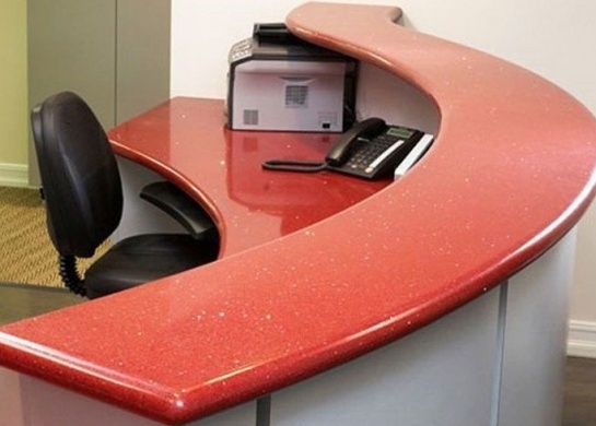 Ресепшен – зона приёма гостей. Обращая на неё внимание, мы судим о статусе заведения, впервые заходя в гостиницу, салон красоты, банк, холл компании. Жидкий камень, как материал, уникален. Если стиль – это язык дизайна, то каменная стойка ресепшен-зоны – это слова знакомства. Нужно лишь знать язык камня. Талантливый дизайнер впишет его лаконичную текстуру в любое стилевое направление ‒ от классицизма до хай-тека.